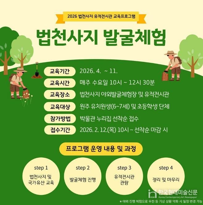 한국현대미술신문 원진 기자 | 역사박물관(관장 남기주)은 법천사지 유적전시관에서 2026년 법천사지 발굴 체험 등 교육프로그램을 운영한다.