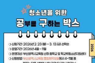 ‘읽음채움 도서관’에 참여할 ‘어린이 탐구단’과 ‘청소년 키움단(1기)’은 11일부터 부산광역시교육청 통합예약포털을 통해 온라인 접수를 진행한다.