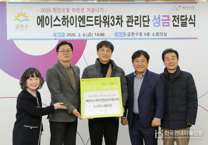 지난 6일에는 에이스하이엔드타워3차 지식산업센터 관리단(회장 김영남)이 관내 취약계층을 위해 성금 500만 원을 기부했다. 성금 전달식에는 김영남 에이스하이엔드타워3차 지식산업센터 관리단 회장, 임원 등 7여 명이 참석했다.