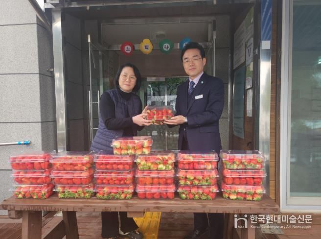 한국현대미술신문 기자 | 고창군 체류형 농업창업지원센터가 공동실습하우스에서 재배한 딸기를 지난 12일 성내면 느티나무 장애인거주시설에 전달했다.