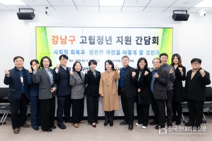 한국현대미술신문 배윤섭 기자 | 강남구의회 이도희 경제도시위원장이 지난 11일 오후 6시 강남구의회 7층 열린회의실에서 '강남구 고립청년 지원 간담회 : 사회적 회복과 안전한 재연결 어떻게 할 것인가?'를 개최하고 전문가들과 정책 방향을 논의했다.