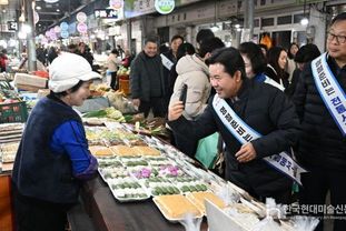 한국현대미술신문 신정은 기자 | 박정현 부여군수가 민족 최대 명절인 설을 앞두고 15일 지역 전통시장을 찾아 민생경제 현장을 점검하고 상인들을 격려했다.