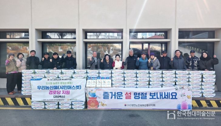 한국현대미술신문 정소영 기자 | 대한노인회 부산중구지회(지회장 이성순)에서는 지난 11일 가톨릭센터 1층에서 설 명절맞이 행복한 나눔 도농상생 우리 농산물 소비 활성화 취지로 농협중앙회에서 후원받은 샤인머스켓 4kg 250박스를 각 경로당으로 전달했다.