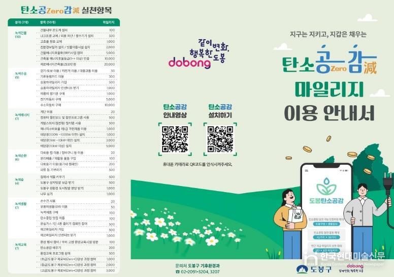 한국현대미술신문 배건 기자 | 서울 도봉구가 주민 주도형 탄소중립 실천 플랫폼 ‘탄소공(Zero)감(減)마일리지’ 활성화에 나선다.