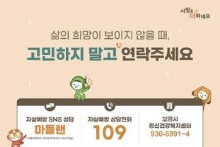 김옥경 건강증진과장은 “봄철은 심리적 불안감이 커질 수 있는 시기인 만큼, 주변 이웃의 작은 변화에도 관심을 기울여 달라”며 “앞으로도 촘촘한 자살예방 안전망을 구축하고 생명존중문화 확산을 위해 적극 노력하겠다”고 말했다.