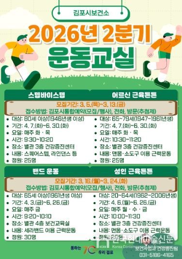 한국현대미술신문 배윤섭 기자 | 김포시는 2026년 4월부터 6월까지 운영되는 2분기 운동 프로그램 참여자를 3월 5일부터 24일까지 모집한다.