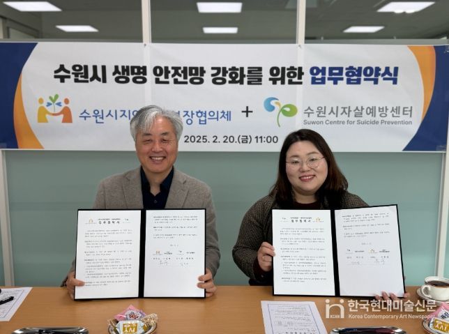 한국현대미술신문 배윤섭 기자 | 수원시지역사회보장협의체와 수원시자살예방센터는 20일 수원시홍재복지타운 세미나실에서 지역사회 생명안전망 강화를 위한 업무협약을 체결하고, 협력을 약속했다.