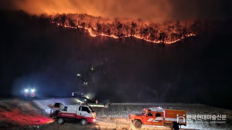 한국현대미술신문 신정은 기자 | 예산군은 지난 21일 오후 2시 22분경 대술면 송석리 411-4번지 주택 인근에서 발생한 화재가 인근 산림으로 확산되며 산불로 이어졌다고 밝혔다.