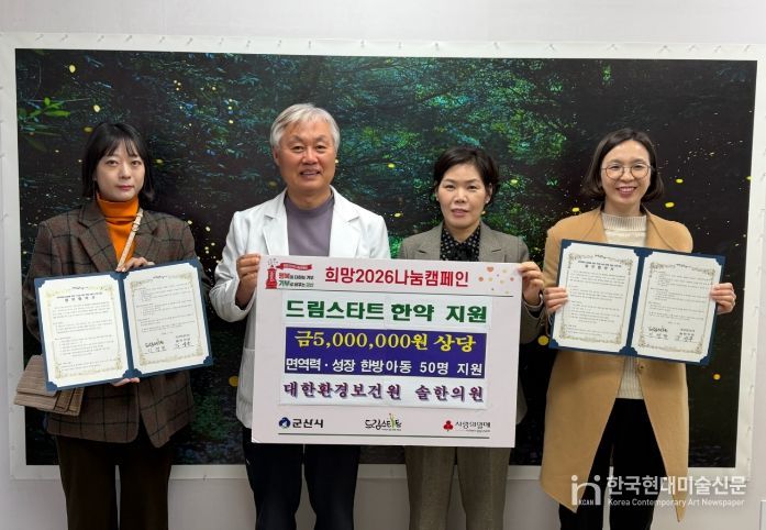 한국현대미술신문 기자 | 군산시 드림스타트와 (재)대한환경보건원 솔한의원(원장 강성용)이 ‘드림 아이 한방 케어’ 업무협약을 체결해 아이들의 건강 증진에 함께 나섰다.