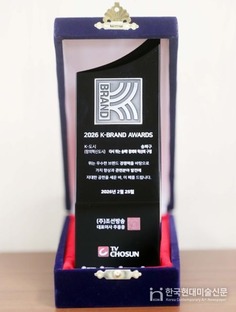 한국현대미술신문 배건 기자 | 서울 송파구가 25일 서울 더플라자호텔에서 열린 ‘2026 TV조선 K-브랜드 어워즈’ 시상식에서 K-도시(창의혁신도시) 부문 대상을 수상했다.