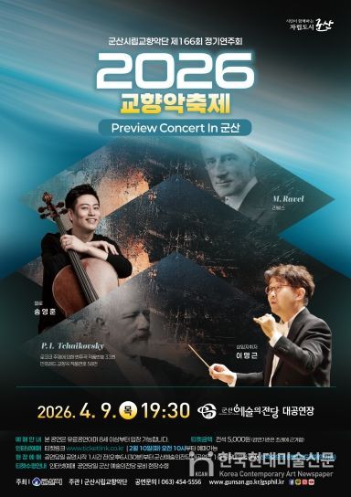 한국현대미술신문 기자 | 군산시립교향악단(상임지휘자 이명근)이 국내 대표 클래식 축제인 교향악축제 초청을 기념해 오는 4월 9일 오후 7시 30분, 군산예술의전당 대공연장에서 제166회 정기연주회를 개최한다.