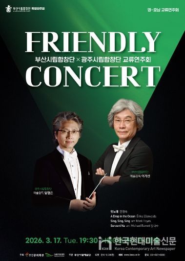 한국현대미술신문 정소영 기자 | 부산시립합창단(예술감독 이기선)은 오는 3월 17일 오후 7시 30분, 낙동아트센터 콘서트홀에서 '부산-광주시립합창단 교류연주회 프렌들리 콘서트(Friendly Concert)'를 개최한다.