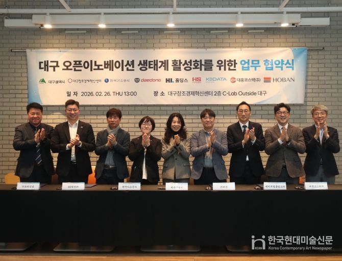 한국현대미술신문 정소영 기자 | 대구광역시와 대구창조경제혁신센터는 2월 26일 대구센터 2층에서 ‘대구 스타트업 오픈이노베이션 지원사업’ 공동 운영을 위한 업무협약(MoU)을 체결했다.