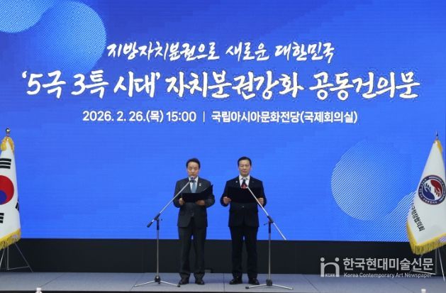 한국현대미술신문 정소영 기자 | 대한민국시장·군수·구청장협의회는 2월 26일 광주 국립아시아문화전당에서 민선8기 4차년도 제3차 공동회장단회의를 개최하고,『5극3특 시대 자치분권 강화 공동건의문』을 발표했다.