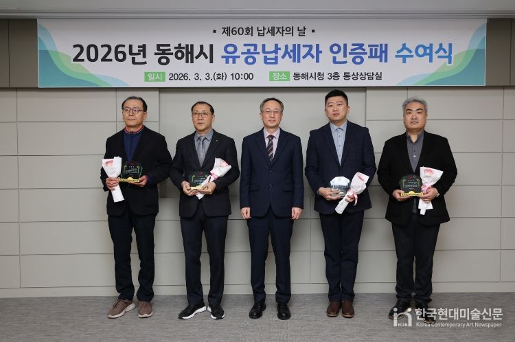 한국현대미술신문 원진 기자 | 동해시는 3월 3일 '제60회 납세자의 날'을 맞아 시청 통상상담실에서 유공납세자 인증패 수여식을 열고 성실납세자들에게 감사의 뜻을 전했다.