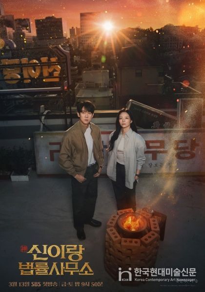 이 옥상에서는 법정에서의 통쾌한 변론으로 억울한 마음을 푼 망자에 대한 조용한 배웅이 이어진다. 노을이 드리워진 도심의 실루엣에서 느껴지는 아련한 감성은 ‘신이랑 법률사무소’만의 정서를 상징적으로 드러내는 대목. 사이다 법정극의 쾌감 너머, 망자를 향한 애도와 존중이 공존하는 세계관이 한 장의 포스터에 집약된 셈이다. 또한 신이랑과 한나현이 나란히 서서 같은 하늘을 바라보고 있는 구도 역시 의미심장하다. 서로 다른 방식으로 사건을 대하던 두 사람이 같은 목표를 가진 파트너로 자리매김한다는 걸 암시하기 때문. 차갑고 냉혈했던 한나현이 이 공간에서 어떤 변화를 맞이하게 될지도 궁금증을 자극한다.