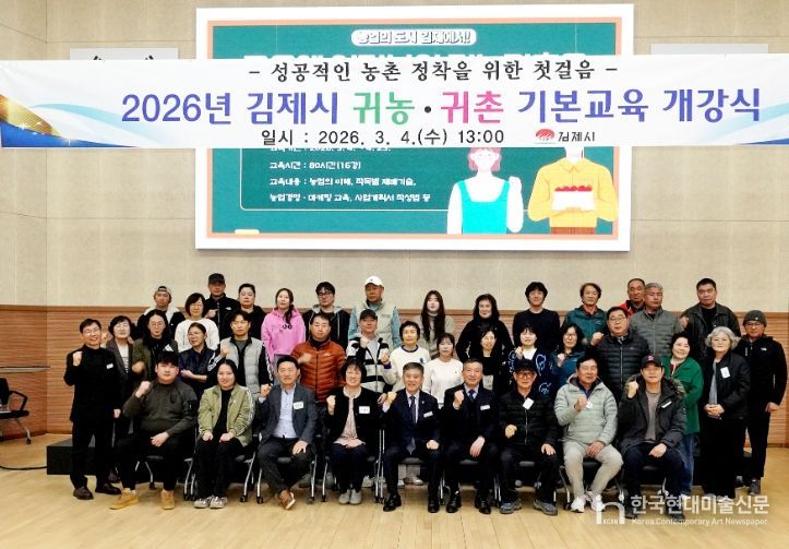 한국현대미술신문 기자 | 김제시는 지난 4일 농업인교육문화지원센터 2층 대강당에서 2026년 김제시 귀농귀촌 기본교육 개강식을 개최하고, 귀농귀촌을 희망하는 교육생 40여명과 함께 성공적인 농촌 정착을 위한 첫걸음을 내디뎠다.