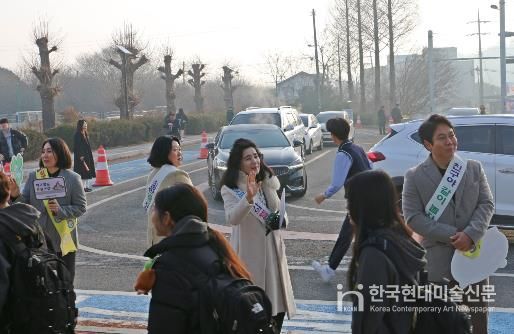 한국현대미술신문 신정은 기자 | 충청남도당진교육지원청은 3월 5일 송악중학교에서 신학기를 맞아 학생들의 안전한 등굣길 조성과 건강한 학교문화 형성을 위한 교통안전 및 학교폭력예방 캠페인을 실시했다.
