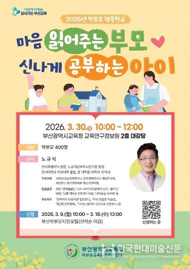 한국현대미술신문 정소영 기자 | 부산광역시교육청은 학부모의 건전한 자녀 교육관 정립과 자녀 교육 역량 강화를 지원하기 위해 ‘학부모 행복학교’를 운영한다고 밝혔다.