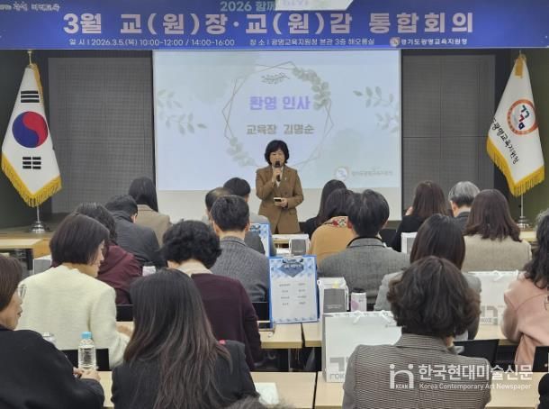 한국현대미술신문 배윤섭 기자 | 경기도광명교육지원청은 3월 5일, 광명교육지원청 3층 해오름실에서 2026 해오름 광명교육과 경기미래교육 구현을 위한 ‘2026년 3월 교(원)장, 교(원)감 통합회의’를 운영했다. 이번 통합회의는 학년 초 학교와 교육지원청, 도교육청 간의 협력을 강화하고, 학교 중심의 교육정책, 미래장학, 교육과정운영의 선순환 체제를 통해 학교 중심 행정 지원의 기틀을 마련하고자 진행됐다.