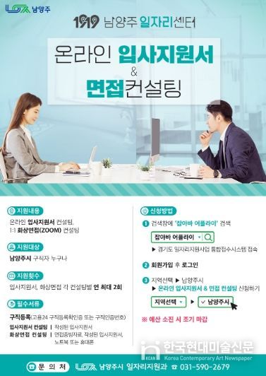 한국현대미술신문 배윤섭 기자 | 남양주시는 오는 9일부터 관내 구직자를 대상으로 ‘2026 온라인 입사지원서 및 면접 컨설팅’참여자를 모집한다고 6일 밝혔다.