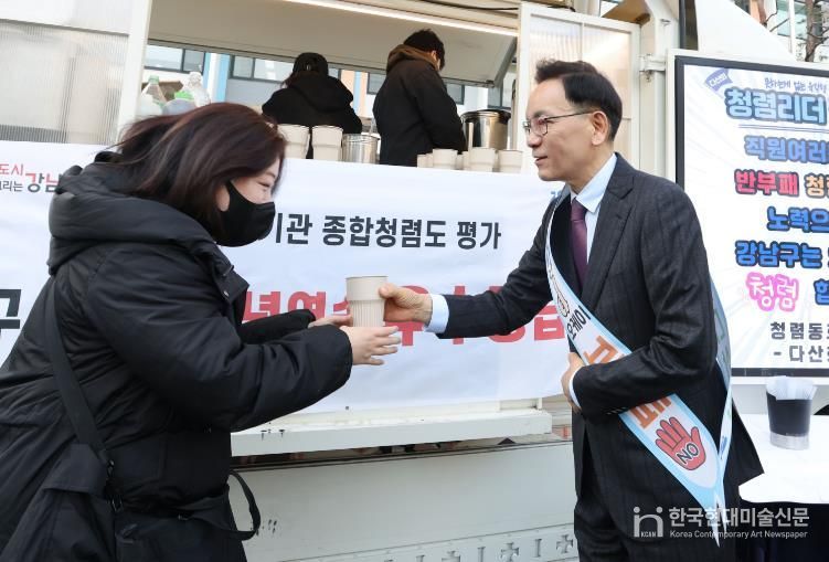 한국현대미술신문 배건 기자 | 꿈이 모이는 도시, 미래를 그리는 강남구가 3월 11일 구청에서 ‘여러분 덕분입니다’ 청렴캠페인을 진행했다. 2025년 공공기관 종합청렴도 평가에서 3년 연속 청렴 우수등급을 달성한 것을 기념하고, 반부패·청렴 실천 의지를 다시 다지기 위해 마련한 행사다.