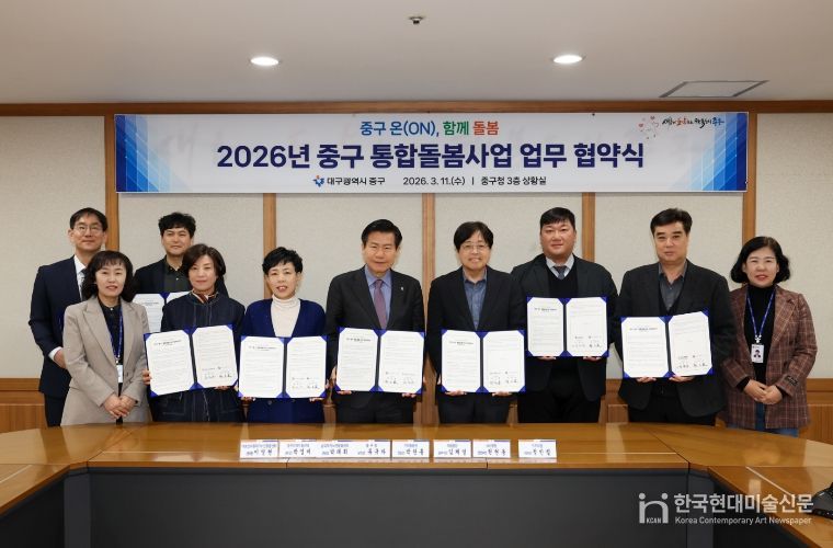 한국현대미술신문 정소영 기자 | 대구 중구는 지난 11일 구청 상황실에서 ‘중구 온(ON), 함께 돌봄’ 통합돌봄 지역특화사업의 안정적 추진을 위해 관내 7개 기관과 업무협약을 체결하고, 민·관 협력 기반의 지역 통합 돌봄 체계 구축에 나섰다.
