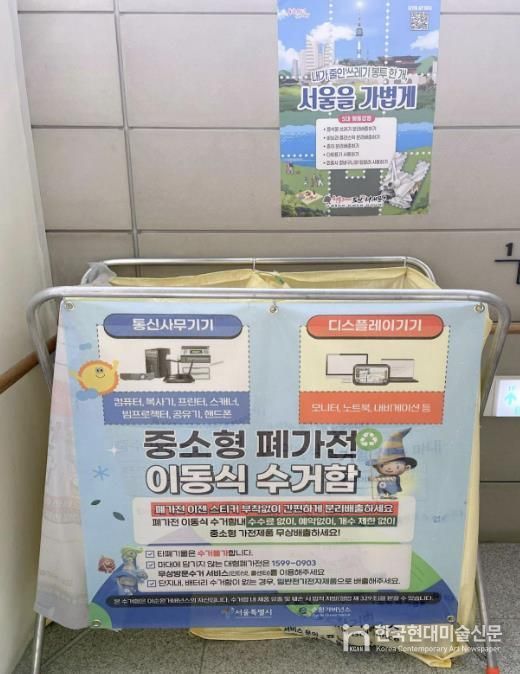 한국현대미술신문 배건 기자 | 서대문구는 생활폐기물 발생 감량과 자원순환 활성화를 위해 동주민센터와 공동주택 등 생활권 거점에 최근 ‘중소형 폐가전 전용 수거함’을 설치했다고 13일 밝혔다.