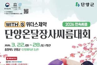 군은 ‘위더스제약 2026 민속씨름 단양온달장사씨름대회’가 오는 22일부터 28일까지 7일간 단양군체육관 동관(구 문화체육센터)에서 열린다고 밝혔다.