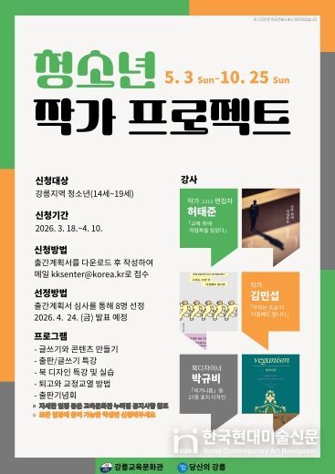 한국현대미술신문 원진 기자 | 강릉교육문화관은 지역 작가와 함께 청소년이 한 권의 책을 기획하고 완성하는 전 과정을 경험할 수 있도록 ‘청소년 작가 프로젝트’를 운영한다.
