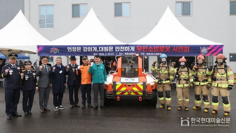 한국현대미술신문 신정은 기자 | 충남도 소방본부가 800℃의 화염과 한 치 앞을 내다 볼 수 없는 짙은 연기를 뚫고 화재 진압 및 인명 수색 작전을 펼 수 있는 무인소방로봇을 현장에 배치, 본격 가동에 들어갔다.