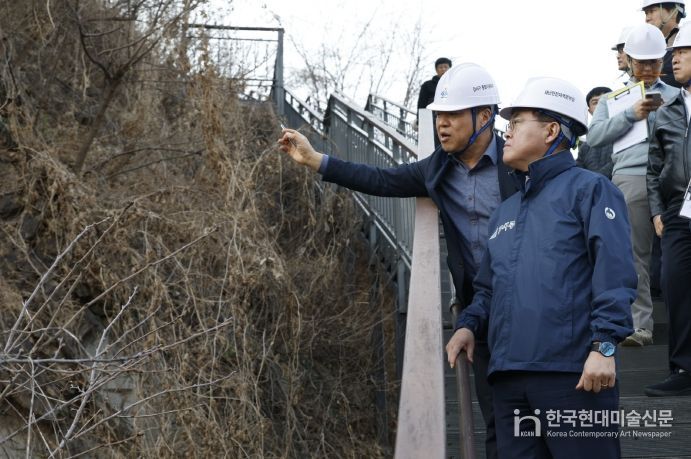 한국현대미술신문 배건 기자 | 진교훈 서울 강서구청장이 20일 해빙기 안전사고 예방을 위해 직접 급경사지 안전점검에 나섰다.