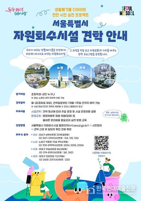 한국현대미술신문 배건 기자 | 서울시는 3월 23일부터 4개 강남·노원·마포·양천 등 4개 자원회수시설 견학 프로그램에 ‘종량제봉투 파봉 체험 프로그램’을 새롭게 도입한다.