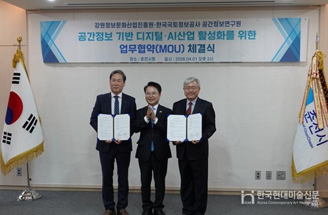 한국현대미술신문 원진 기자 | 강원정보문화산업진흥원과 한국국토정보공사 공간정보연구원이 공간정보 기술과 디지털·AI 산업의 융합을 통한 지역경제 활성화와 관련 산업 진흥을 위해 업무협약을 체결했다. 이번 협약은 지역 중심의 공간정보 기반 디지털·AI 산업 활성화를 위한 협력체계를 확립하고, 양 기관의 전문성과 역량을 연계하기 위해 추진됐다.