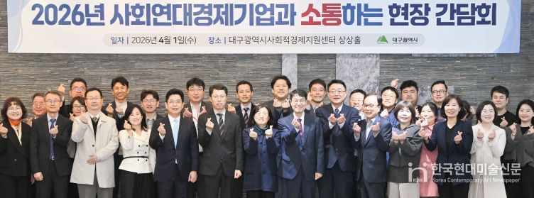 한국현대미술신문 정소영 기자 | 대구광역시는 국정과제인 ‘사회연대경제 성장 촉진’을 가속화하고 현장의 목소리를 시정에 반영하기 위해 4월 1일 오후 3시 40분, 대구사회적경제지원센터에서 김정기 대구광역시장 권한대행 주재로 ‘사회연대경제기업 대표들과의 소통 간담회’를 개최했다.