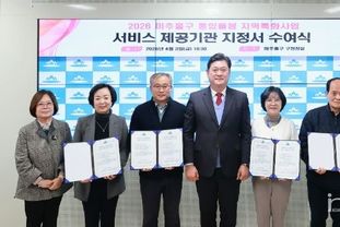 한국현대미술신문 박재남 기자 | 인천 미추홀구는 3일 구청장실에서 ‘2026년 미추홀구 통합 돌봄 지역특화 사업을 수행할 서비스 제공기관 5곳에 지정서를 수여했다고 밝혔다.