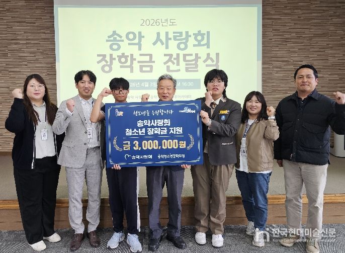 한국현대미술신문 신정은 기자 | 송악사랑회는 3일 송악청소년방과후아카데미에 장학금을 전달했다. 이번 장학금 전달식은 송악청소년문화의집에서 진행됐으며, 재학생 3명에게 매월 10만원씩 총 300만원이 지원된다. 송악사랑회는 청소년들의 올바른 성장에 기여하고자 하는 의지를 표명하며, 앞으로도 후원을 지속할 계획임을 밝혔다.
