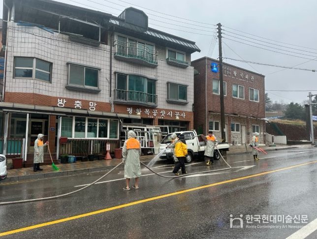 한국현대미술신문 원진 기자 | 평창읍은 지난 4일 오전 8시 30분부터 관내 주요 시가지 일원에서 새봄맞이 시가지 물청소를 진행했다.