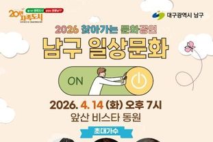 한국현대미술신문 정소영 기자 | 대구 남구는 지역 주민들에게 일상 속 문화 향유 기회를 확대하고, 지역 예술가들의 공연 활동을 지원하기 위해 ‘2026 찾아가는 문화공연’ 을 개최한다.
