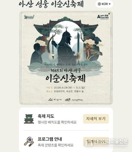한국현대미술신문 신정은 기자 | 아산시가 주최하고, (재)아산문화재단이 주관하는 '제65회 아산 성웅 이순신 축제'에 스마트 축제를 위한 디지털 가이드를 전격 도입한다.