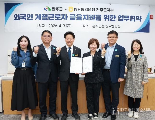 한국현대미술신문 기자 | 완주군이 외국인 계절근로자들의 원활한 금융 서비스 이용과 안정적인 정착을 돕기 위해 NH농협은행 완주군지부와 긴밀한 협력 체계를 구축했다.