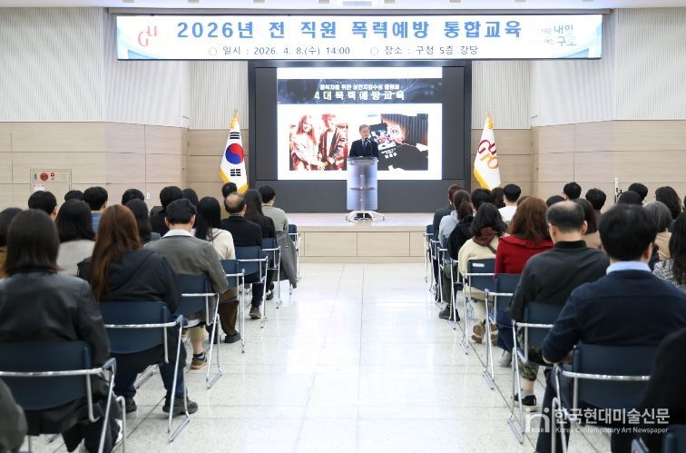 한국현대미술신문 배건 기자 | 구로구가 이달 8일 구청 강당에서 공무원, 공무직 근로자, 환경공무관, 청원경찰, 기간제 근로자 등 전 직원을 대상으로 안전한 조직문화 조성을 위한 ‘폭력예방 통합교육’을 실시했다.