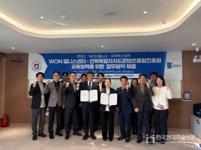 한국현대미술신문 기자 | 전북특별자치도 콘텐츠융합진흥원과 원광대학교 WON 웰니스센터(센터장 최미숙)은 콘텐츠와 웰니스 분야 연계를 위한 협력 방안을 마련하고, 상호 협력 기반 구축을 위한 논의를 진행하고 있다고 밝혔다.