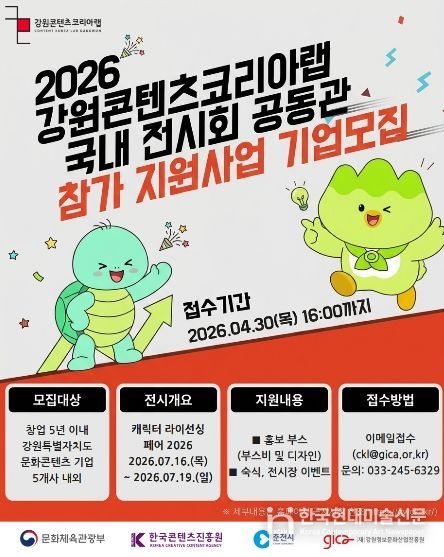 한국현대미술신문 원진 기자 | 강원콘텐츠코리아랩이 오는 4월 30일까지 ‘캐릭터 라이선싱 페어 2026’에 참가할 지역 콘텐츠 기업을 모집한다.