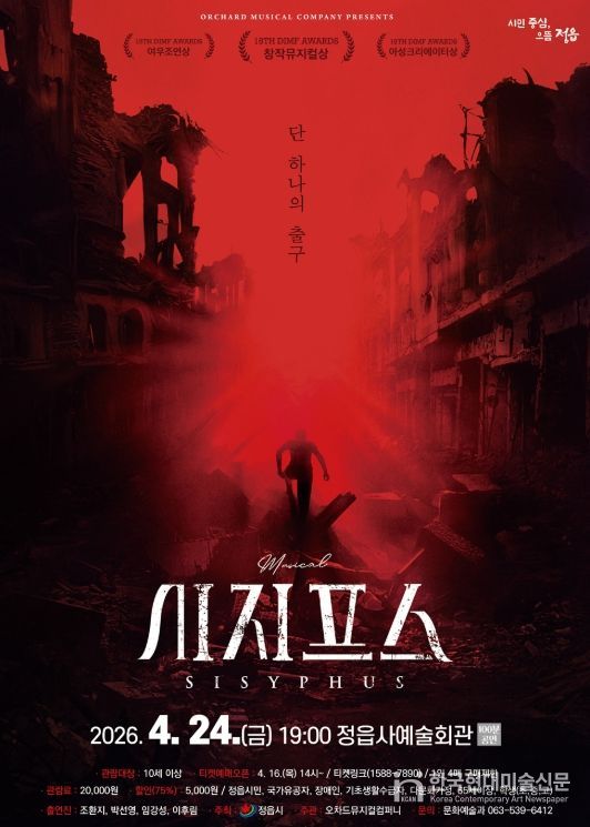 한국현대미술신문 기자 | 정읍시가 시민들에게 수준 높은 문화 향유 기회를 제공하기 위해, 오는 24일 오후 7시 정읍사예술회관에서 창작 음악극(뮤지컬) ‘시지프스’를 무대에 올린다.