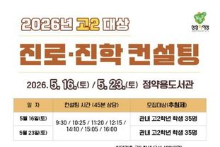 프로그램은 5월 16일과 5월 23일 정약용도서관에서 진행한다. 학생부와 성적일람표, 희망 전공 자료를 바탕으로 1:1 맞춤형 컨설팅을 운영하며, 진로·진학 전문교사 10명이 컨설턴트로 참여해 진로 설계를 지원한다.