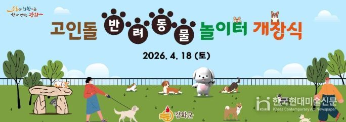 한국현대미술신문 박재남 기자 | 강화군은 오는 4월 18일 반려동물과 사람이 함께 어울릴 수 있는 ‘고인돌 반려동물 놀이터’를 개장하고, 이날 오전 10시 개장식을 개최하며 본격적인 운영에 들어간다.