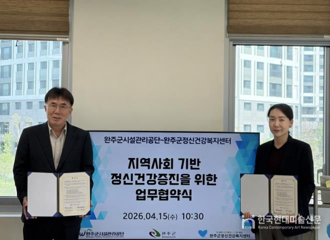 한국현대미술신문 기자 | 완주군시설관리공단이 지난 15일 완주군정신건강복지센터와 ‘정신건강 증진을 위한 업무협약’을 체결했다.