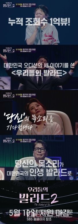 오디션 프로그램의 명가 SBS와 국내 최고 매니지먼트사 SM C&C가 손잡고 다시 한 번 발라드 열풍을 일으킬 ‘우리들의 발라드’ 시즌2는 올 하반기 방송된다.