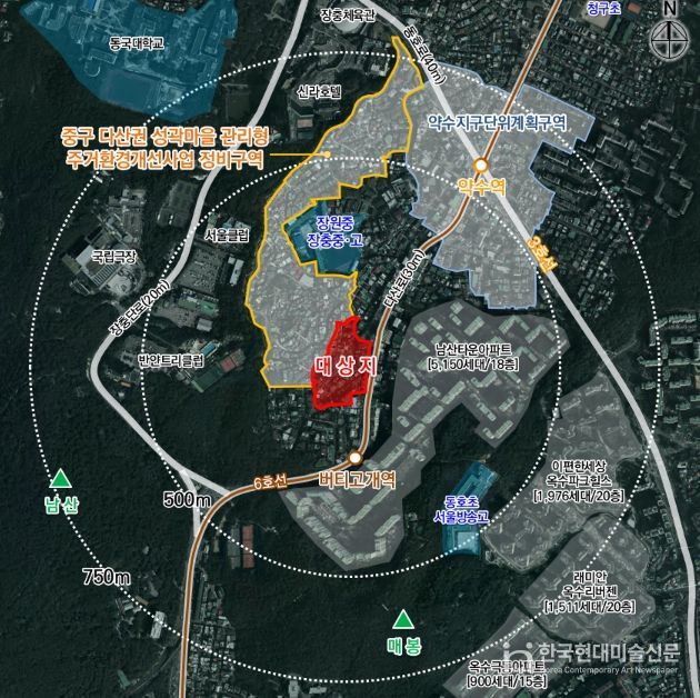 한국현대미술신문 배건 기자 | 남산 숲세권이자 6호선 버티고개역 인근에 위치한 신당9구역에 최고 15층, 500세대 이상 규모의 공동주택이 들어설 전망이다. 서울 중구는 지난해 11월 서울시에 제출한 신당9구역 주택재개발사업 정비계획 변경안이 16일 서울특별시 고시로 최종 확정됐다고 밝혔다.